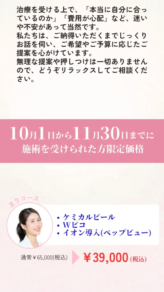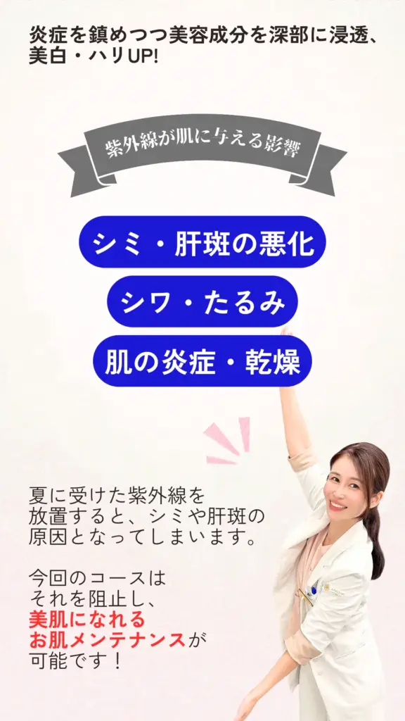 【10月1日〜11月30日まで!】夏に受けた紫外線、しっかりケアしてシミ対策!豪華な3つのコースを特別価格で!