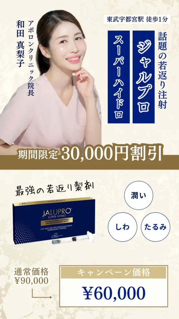シワやたるみを根本から改善したい方へ!話題の若返り製剤『ジャルプロ』が33%OFF(12月23日までの期間限定) 2025年11月17日 キャンペーンについて無料相談する! キャンペーンについて無料相談する! Tweet