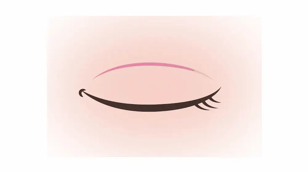 二重のラインが蒙古襞の外側から始まり、目頭から目尻まで一定の幅を保つデザインです。西洋人のような、はっきりとした印象の目元になります。