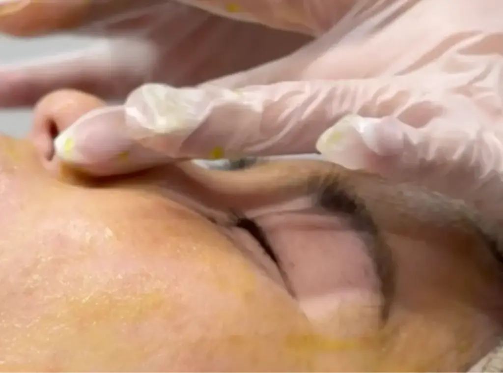 メイクを落としていただき、術前の状態を記録します。施術部位の確認や効果の比較にも活用します。