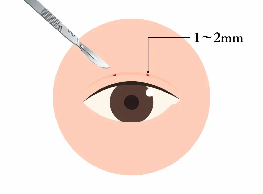 二重のライン上、もしくはまぶたの裏側(結膜)から、約1〜2mmの小さな切開を加えます。そこからマイクロ鑷子なども用いながら、慎重に埋没糸を探し出し、丁寧に取り除きます。お身体への負担を考え、必要以上に組織を傷つけることは決してありません。