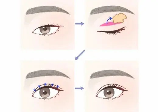 まぶたの皮膚を2〜3ミリほど切開し、余分な脂肪を取り除く施術です。