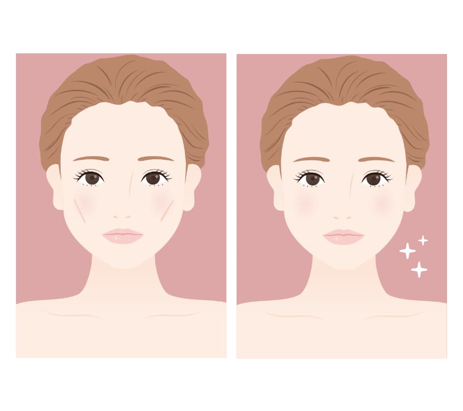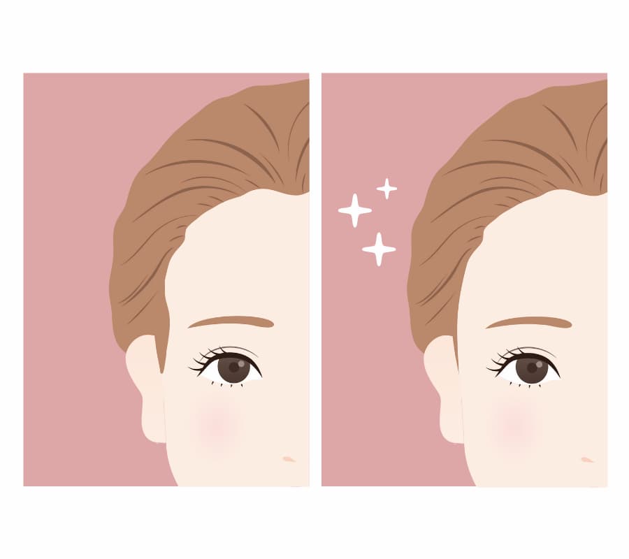 疲れた印象や老けた印象を与えるこめかみを、ふっくらとさせます。