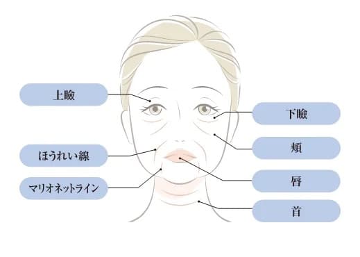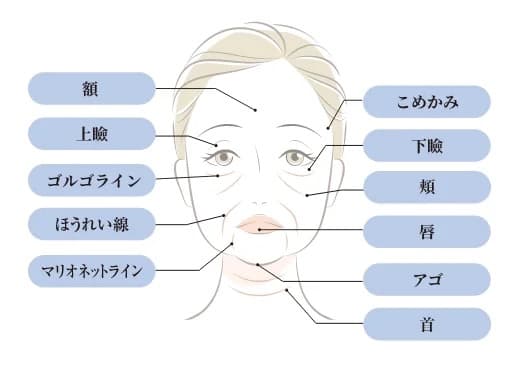 ほうれい線、ゴルゴライン、目の上、目の下、顎先、眉間、唇、涙袋、首のシワ、額のシワ | ¥80,000 |